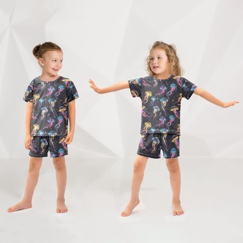 ALAZA Neon Jellyfish Pajama Set Short Sleeve Sleepwear Soft Lounge Nightwear 3