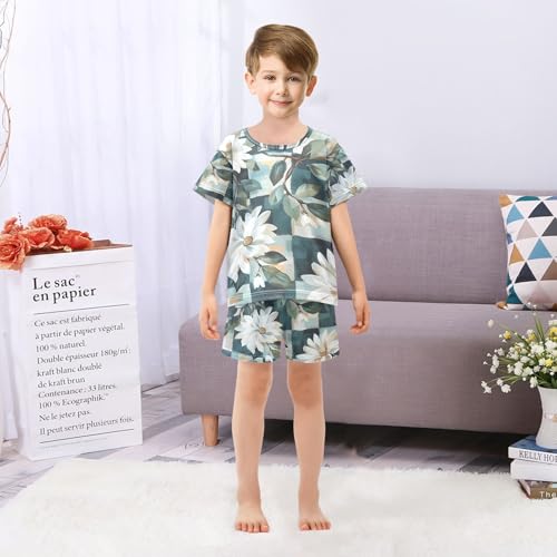 ALAZA Vintage Daisy Floral Pajama Set Short Sleeve Sleepwear Soft Lounge Nightwear 1