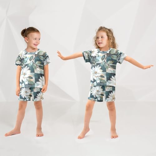 ALAZA Vintage Daisy Floral Pajama Set Short Sleeve Sleepwear Soft Lounge Nightwear 2
