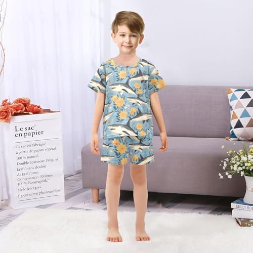HOT ! ALAZA Sharks and Sunflowers Pajama Set Short Sleeve Sleepwear Soft Lounge Nightwear