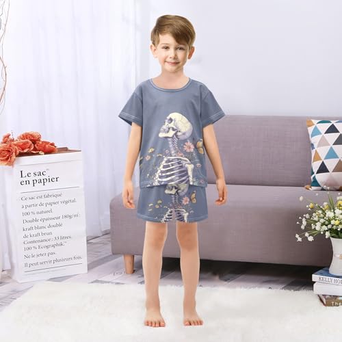 ALAZA Skeleton and Butterfly Pink Flowers Pajama Set Short Sleeve Sleepwear Soft Lounge Nightwear 2
