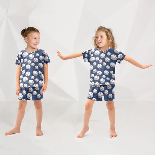 ALAZA Funny 3d Baseball Pajamas Set Short Sleeve Cotton Sleepwear Summer Pjs 2 Piece 5-14Y 3
