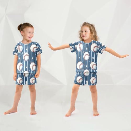 senya Short Sleeve Pajamas Sets Summer Cotton Sleepwear Sport Baseball Balls Star Blue Stipes 2