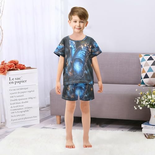 senya Short Sleeve Pajamas Sets Summer Cotton Sleepwear Blue Light Butterfly 2
