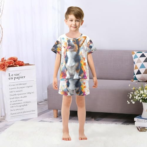 senya Short Sleeve Pajamas Sets Summer Cotton Sleepwear Watercolor Corgi Dog 1