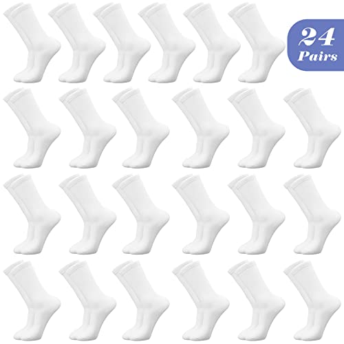 Newcotte 24 Pairs Girls White Knee High Socks School Uniform Seamless Long Cotton Socks Stockings Kids Lovely Dressy Soft Girls Stockings 7