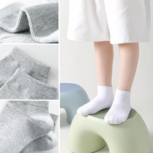 • KIDS SEAMLESS SOCKS: Seamless toe design ideal for kids' sensitive feet. Proper elasticity of short ankle socks for a comfortable fit, easy to put on or off. The moderate thickness enables this low cut socks to be worn in spring, summer, fall and winter