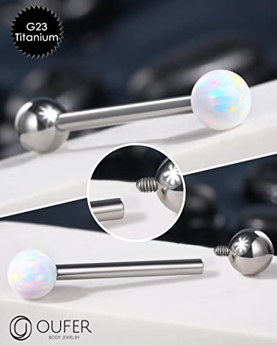 HOT ! OUFER Titanium Tongue Rings - White Opal Tongue Jewelry, Internally Threaded, Straight Barbell for Women & Men