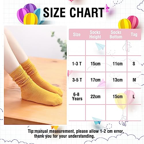 • SIZE & PACKAGE: Our size S scrunchie socks are designed for toddler girls aged 1-3. 4 pair of cotton socks comes in a box.