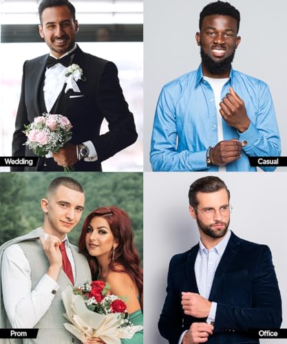 • PERFECT FOR ANY OCCASION: Whether you’re attending a wedding, formal event, graduation, or business meeting, these cufflinks will enhance your look. They also make excellent tuxedo accessories for groomsmen, prom, family photos, or even virtual meetings - adding a sharp, polished finish to any outfit.