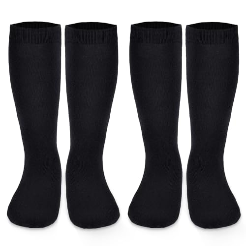 Lusofie 2 Pairs Knee High Socks for Girls 4-8 years Old, Black White Mid-Calf School Uniform Long Socks Soft for Kids 4