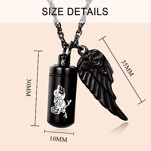 Cylinder Urn Necklace for Ashes Memorial Ashes Necklace with Angel Wing Motorcycle Biker Memorial Urn Pendant Ash Keepsake Cremation Jewelry 4