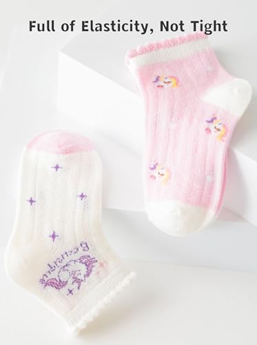 Toddler Girl Mid Calf Socks Cartoon Soft Breathable Thin Cool Ruffle Mesh Socks 5 Pairs 6