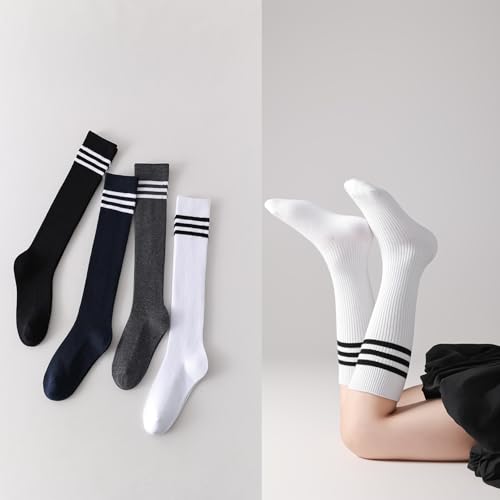 • Classic Striped Design:These uniform socks for girls feature a double-needle design for comfort and shape retention.They have a classic three-stripe design,are soft to the touch,and have excellent elasticity.The cuff design keeps the socks securely in place and prevents slipping.The reinforced toe and heel make them extremely durable.