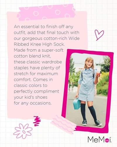 HOT ! MeMoi Girls Wide Ribbed Cotton Blend Uniform Knee Socks