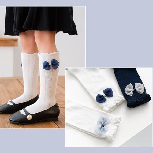 3 Pairs Kid Girls Ruffle Princess Socks Casual Comfy Crew Bow Socks Cute Lightweight Frilly Dress Socks 3
