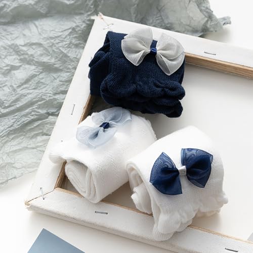 3 Pairs Kid Girls Ruffle Princess Socks Casual Comfy Crew Bow Socks Cute Lightweight Frilly Dress Socks 4