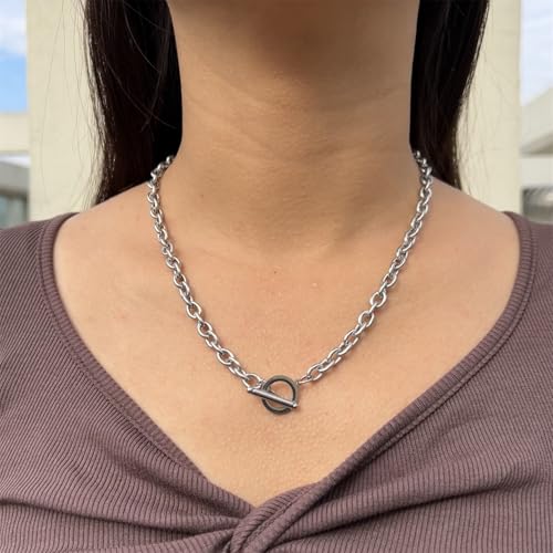 WangGao Stainless Steel Toggle Clasp Chunky Chain Necklace for Women Man,Statement Link T-Bar Clase Choker Necklaces 4