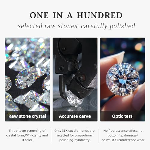• PHYSICAL PROPERTIES: Pmfxinyao moissanite each round brilliant cut stone showcases exceptional light performance with a fire index of 0.104, surpassing that of diamonds. With a hardness rating of 9.25 on the Mohs scale.