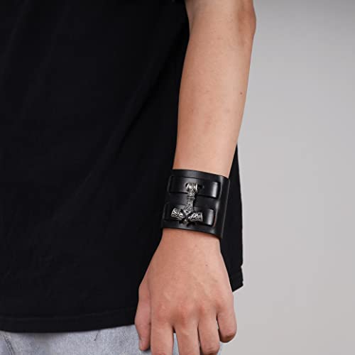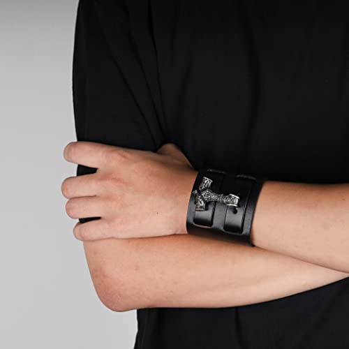 HAQUIL Viking Bracelet for Men - Mjolnir Pendant, Nordic Wide Leather Wristband, Men's Jewelry 1