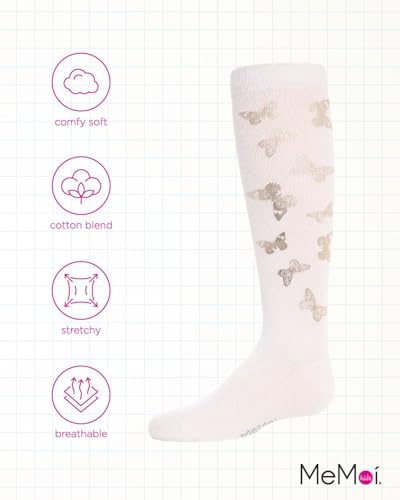 MeMoi Gold and Gilded Butterfly Knee High Cotton Blend Girls Socks 6