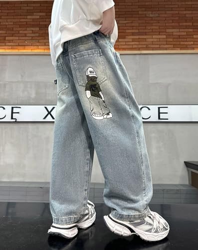More information about Baggy Jeans Boys Y2K Straight Wide Leg Denim Pants Kids Casual Elastic Waist Loose Trousers Pockets Streetwear 4-14T