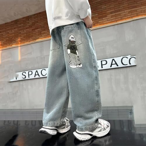 Baggy Jeans Boys Y2K Straight Wide Leg Denim Pants Kids Casual Elastic Waist Loose Trousers Pockets Streetwear 4-14T 7