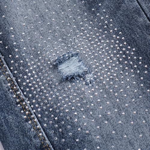 • The denim fabric has a tight surface and a clear texture without feeling rough. The retro denim blue has a slightly polished white effect, and the pants are hot pressed with diamonds, making it particularly stylish for girls to wear.
