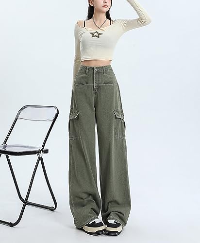 • Features: Denim cargo pants for women are feature with 6 pockets, high rise, loose fit boyfriend style, zipper and button closure, straight wide leg cute jeans for teen girls, trendy y2k jeans for women