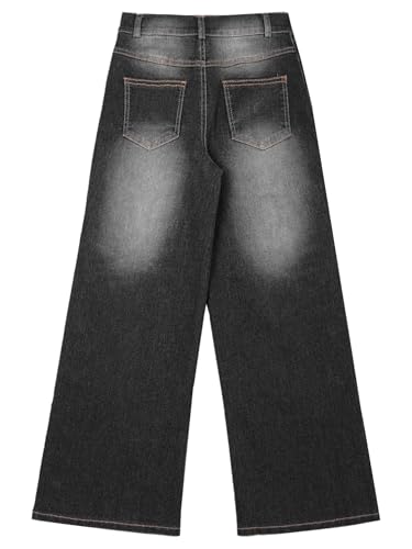 Aislor Kids Girls Jeans Casual Elastic Waist Denim Pants Vintage Wide Leg Trousers Jeggings with Button Split Side 5
