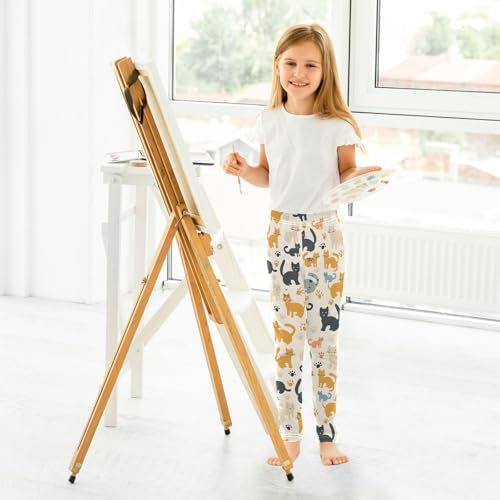 Retro Kitten Cats Girls Leggings Ultra Soft Compression Yoga Gym Pants for Kids 4-10T 5