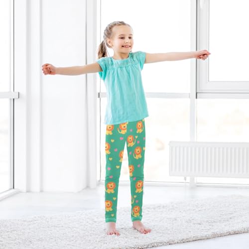 Cute Lion Heart Green Girls Leggings Soft Stretch Workout Yoga Dance Pants for Kids Casual Tights 6