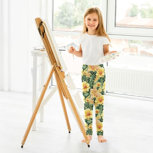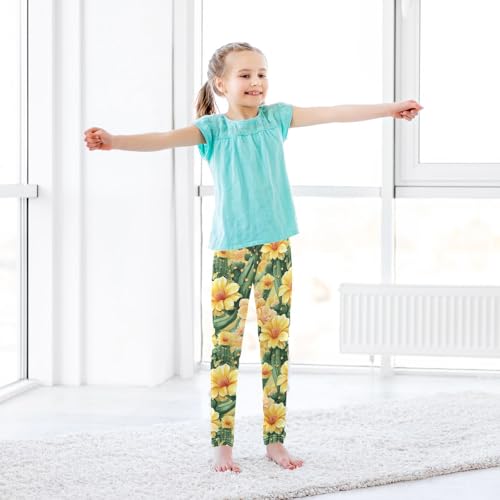 Girls Leggings Tropical Yellow Florals Cactus Soft Toddler Leggings for Girls Kids Pants Size 4T-10T 3