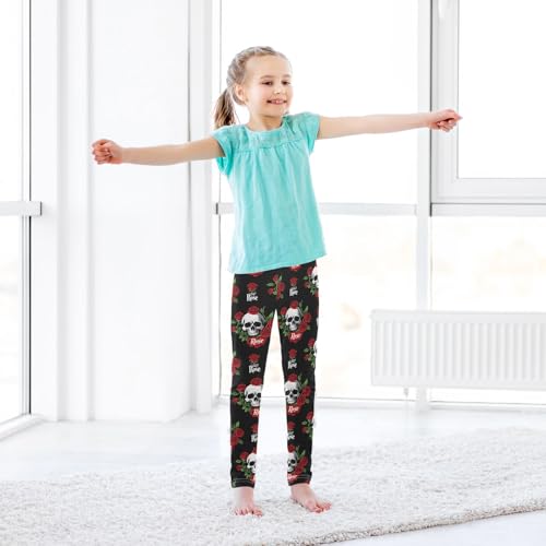 ALAZA Girls' Leggings Children's Yoga Pants Skinny Printed Dance Skull Rose Comfortable 4T 6