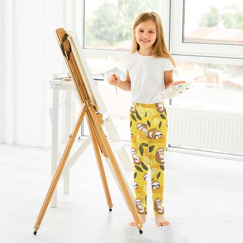 KLL Cute Sloths on Yellow Lemons Toddler Girl Basic Leggings Stretch High Waisted Yoga Pants Running 7