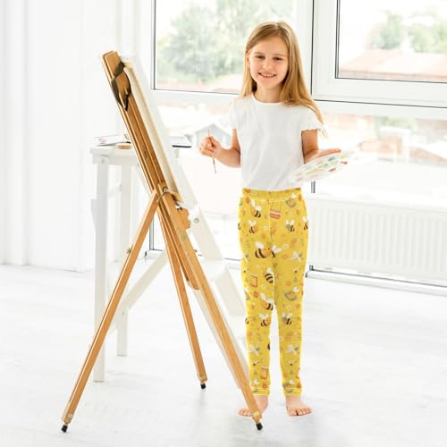 KLL Bees on Yellow Girls Leggings Stretchy Full Length Lounge Pants Gym 5