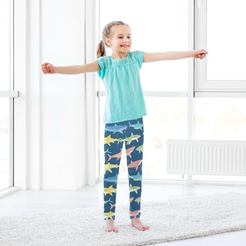 Colorful Sharks Girls' Leggings Toddler Doodles Kids Yoga Pants Dance Active Tights 4T 5