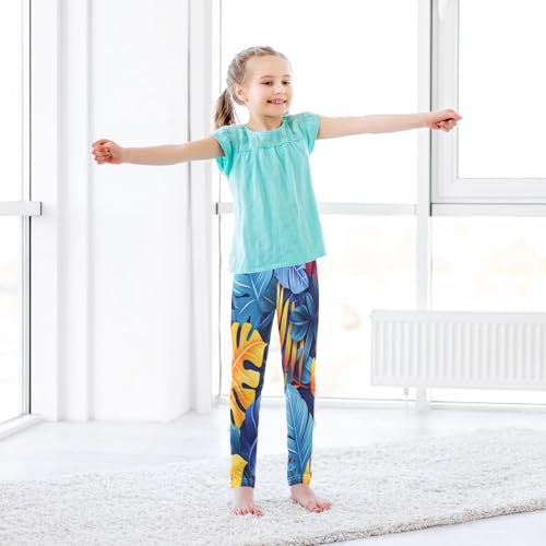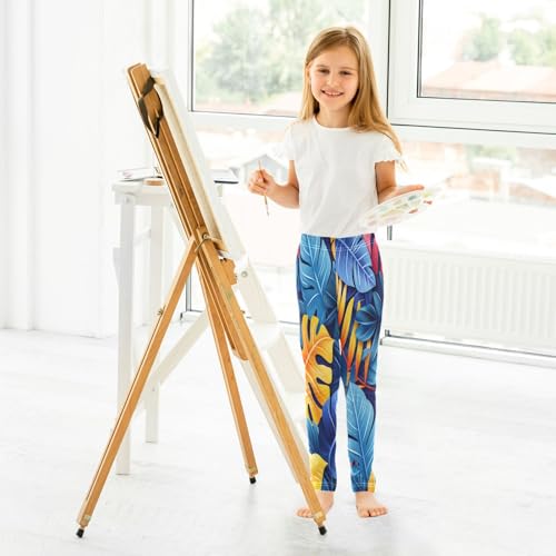 Bolaz Toddler Girls Leggings Printed Yoga Pants Leggings Pink Yellow Leave for Kids 7