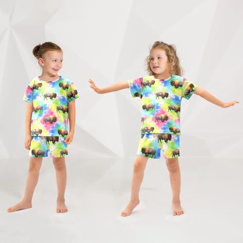 Pajama Short Sets Colorful Bison Abstract Soft Cotton Summer Sleepwear 2 Piece PJS Size 5-14T 6
