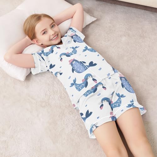 Cute Blue Seals Pajamas Set Soft Pjs Sets 2 Piece Short Sleeve Sleepwear Casual Loungewear 2