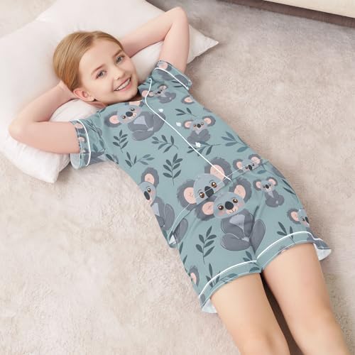 Koala Cartoon Pattern Pajamas Set Summer Button Down Sleepwear Pjs Sets Comfy Loungewear 5