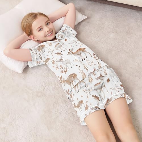ALAZA Cute Deer Pajamas Satin Pajama Set Short Sleeve Button Down Sleepwear 6