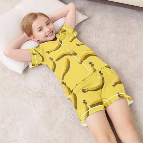 ALAZA Cute Banana Yellow Satin Pajamas Set Short Sleeve Button Down Sleepwear Summer Pjs 2 Piece 1