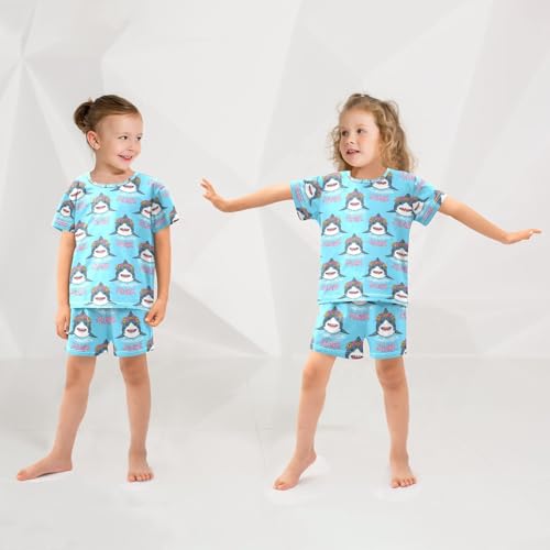 ALAZA Shark with Flower Wreath Blue Pajamas Set Short Sleeve Cotton Sleepwear Summer Pjs 2 Piece 5-14Y 5