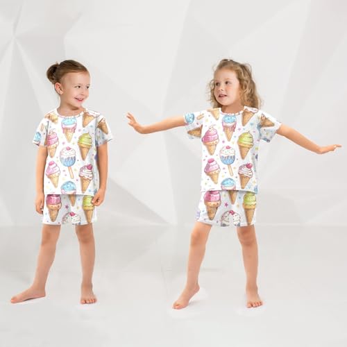 ALAZA Ice Cream Star on White Pajamas Short Sleeve 2 Piece Sleepwear Top and Bottom Pajama Set Unisex 6
