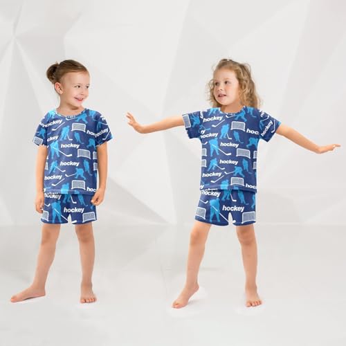 ALAZA Ice Hockey Cartoon Blue Pajamas Set Short Sleeve Cotton Sleepwear Summer Pjs 2 Piece 5-14Y 6