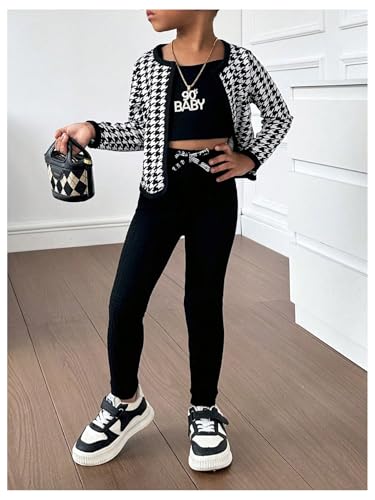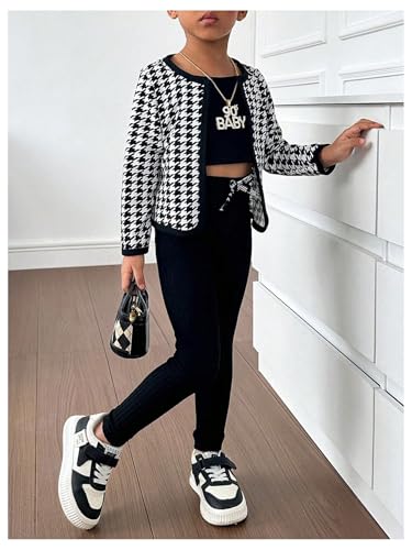 Floerns Toddler Girl's Houndstooth Print Outerwear Long Sleeve Open Front Cardigan Jacket 6