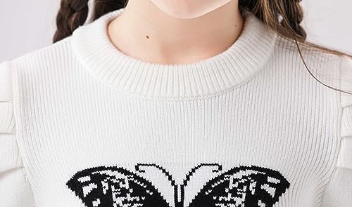• Cute Toddler/Teen Girls Fall Winter Sweater Pullover—features sweet Butterfly/Camellia Flower knit pattern,classic crewneck and puff long sleeves.