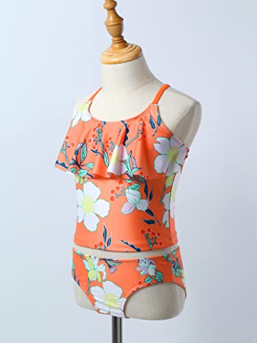 Kids Girls Tropical Floral Print Tankini Swimsuits Ruffles Flounce Hawaii Swimwear Beach Bathing Suit 6