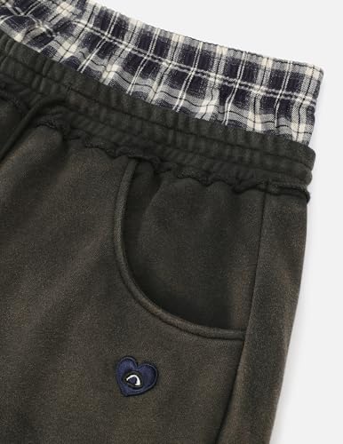Aelfric Eden Double Waist Washed Baggy Sweatpants Loose Wide Leg Plaid Patchwork Casual Pants with Pockets 5